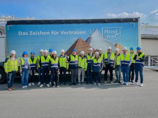 „Voller Herausforderungen“ steckte die Herstellung des Baukörpers „Dah“ mit seinen abgerundeten Seiten. Diese Rundung musste in einem speziellen Verfahren hergestellt werden. Dazu wurde ein Stahlrohr mittig aufgelasert, jedoch nur punktuell, damit das Rohr durch seine Eigenspannung nicht aufspringt und sich der Radius verändert. In das punktierte Rohr wurden die Deckplatten der Bögen mittig eingeschoben und mit einem extralangen Schweißgriff an den Nahtstellen geheftet. Erst danach konnte das Rohr komplett geteilt werden. Nun wurde von innen die komplette Schweißnaht durchgezogen. An den Gegenstückplatten der Rundungen sowie am Mittelteil des Baukörpers „Dah“ befinden sich je 4 Bohrungen, so dass der Baukörper mit M6-Schrauben zusammenmontiert werden konnte. Zuletzt wurde der Baukörper mit Deckel versehen. „In einer von ZINQ zur Verfügung gestellten Zelthalle konnten wir nach dem Aufbringen des Duplex-Systems die Komplettierungsarbeiten verrichten, die Baukörper montieren und zum Transport vorbereiten“, erzählt Jenny Rempel. „Eine wunderbare Zusammenarbeit war das, mit guten Gesprächen und einer fundierten Beratung bzgl. der Machbarkeit im Vorfeld und letztlich einem klasse Ergebnis. Ein großer Dank gilt deshalb allen Projektbeteiligten – insbesondere auch den Mitarbeitern im ZINQ Oberflächenzentrum.“ ZINQ und Kunst am Bau – eine Verbindung, die ganz offensichtlich Zukunft hat.