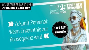 Mit dem ZP Nachgefragt Day am 4. Dezember 2025 setzt die Zukunft Personal ihre digitale Eventreihe fort und widmet sich in vier Live-Sessions den aktuell drängendsten Fragen der Arbeitswelt. Unter dem Motto „Wenn Erkenntnis zur Konsequenz wird“ stehen Themen wie der Fachkräftemangel, die Rolle der Künstlichen Intelligenz im Arbeitsalltag und Weiterlesen…
