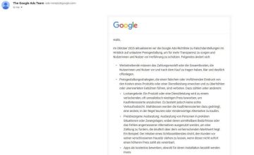 Das Team von Google Ads hat in den letzten Tagen eine offizielle E-Mail zur Aktualisierung der Google Ads-Richtlinie zu Falschdarstellungen im Hinblick auf unlautere Preisgestaltung an Google-Ads-Werbetreibende weltweit versendet. Die Aktualisierung soll für mehr Preistransparenz sorgen und Nutzerinnen und Nutzer vor Irreführung schützen. In der offiziellen E-Mail weist Google darauf Weiterlesen…