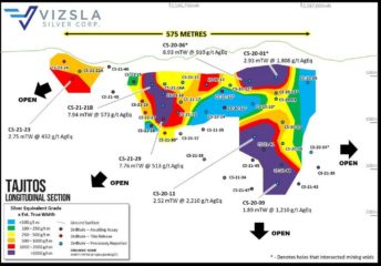 Vizsla vergrößert Tajitos; 32 Bohrungen liefern durchschnittliche wahre Mächtigkeit von 3,08 m mit 505 g/t Silberäquivalent